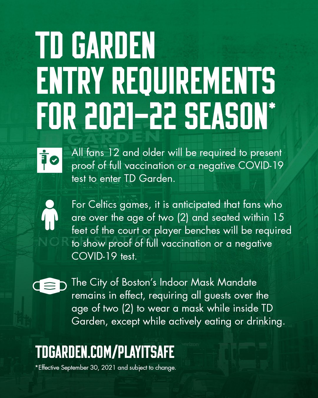 Boston Celtics On Twitter Update Effective September 30 Td Garden Boston Bruins And Boston Celtics Will Require All Guests 12 Years And Older To Present Proof Of Full Vaccination Against Covid 19 Or